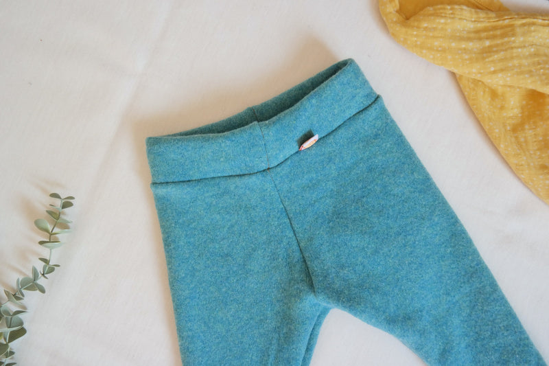 Jawoll Baby saves the valuable material wool and sews baby clothes from it – like these outdoor trousers in size 86/92 in turquoise.