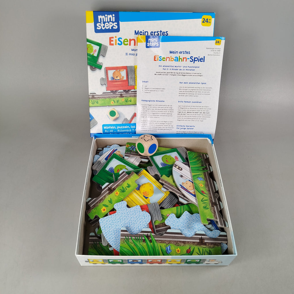 Hol dir das Ravensburger Mein erstes Eisenbahn-Spiel und starte spielerische Zugabenteuer! Das Würfel- und Puzzlespiel aus der ministeps-Reihe lädt Kinder ab 24 Monaten dazu ein, bunte Züge mit tierischen Fahrgästen zusammenzusetzen und Farben zu entdecken. Gespielt wird gemeinsam, ausgelegt für 2–4 Kinder, mit einfachen Regeln und viel Bewegung auf den Schienen. Gib diesem Spielzeug ein neues Zuhause und schenke ihm ein zweites Leben. Sicherheitshinweis gemäß GPSR: Enthält Kleinteile, nicht geeignet für Kinder unter 3 Jahren.