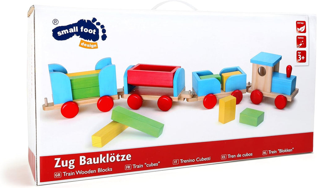 - Diese farbig lackierte Lok samt Waggon schult die sensuellen Fähigkeiten von Kleinkindern