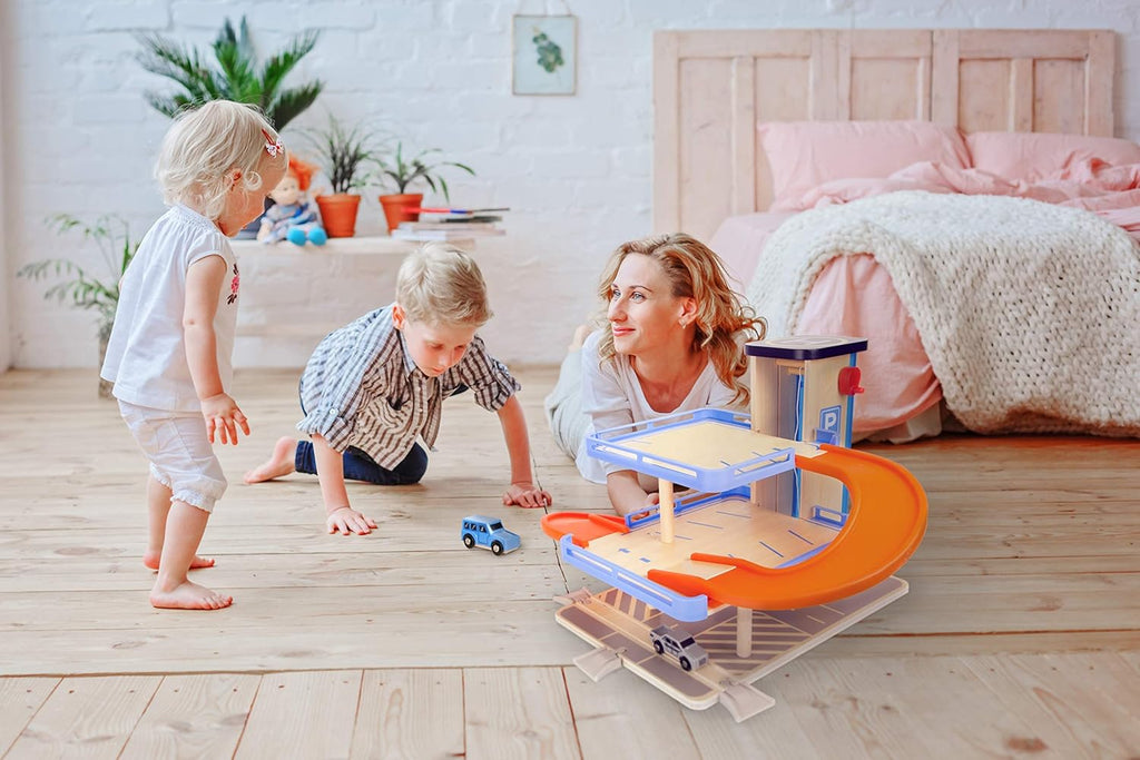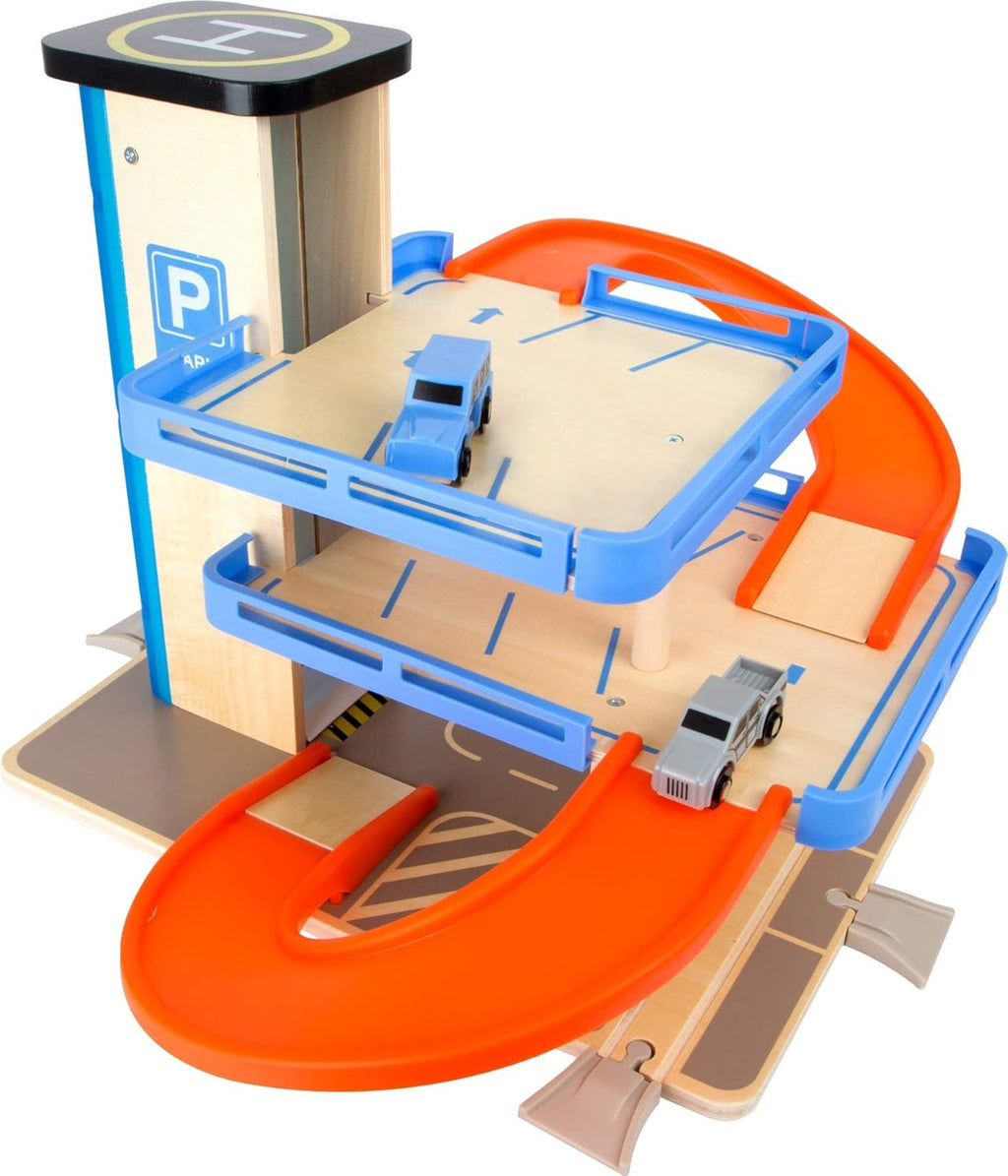 Parkhaus inkl. zweier Autos aus stabiler, hochwertiger Holzverarbeitung und drei Auffahrtsrampen