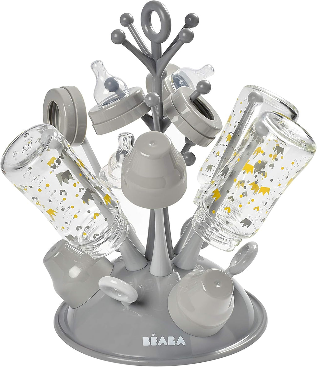 Praktisch: Ermöglicht das Trocknen von Flaschen und Zubehör (Schnuller, Ringe, Kappen) und hält die Arbeitsplatte trocken
