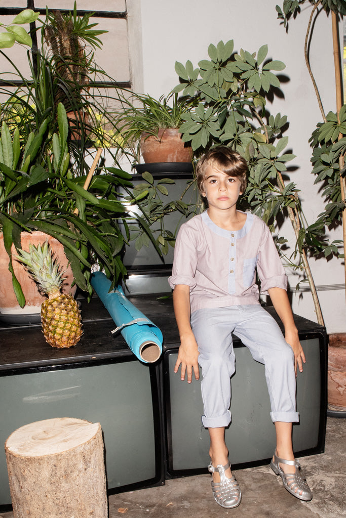 Das Benno Hemd in unserer fein blau/weiss und braun/weiss gewebten Auflage hat einen 3-Knopf-Verschluss, einen weiten Schnitt und eine aufgesetzte Brusttasche. Das Hemd ist bequem und stylish an Jungen wie an Mädchen. Kombiniere es mit der Lio oder Hugo Jacke und der Leo Hose.