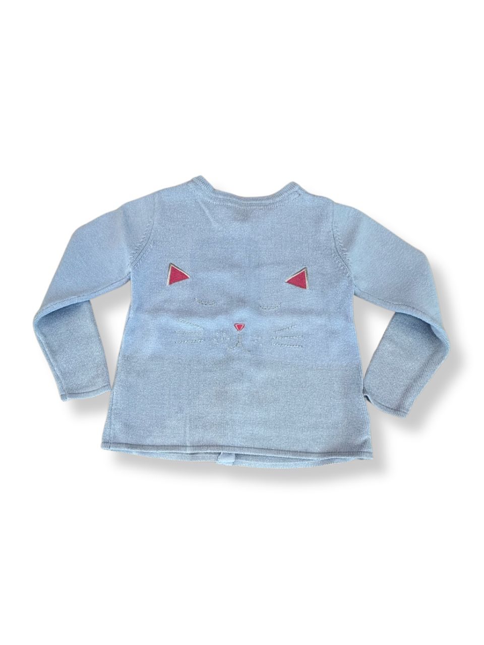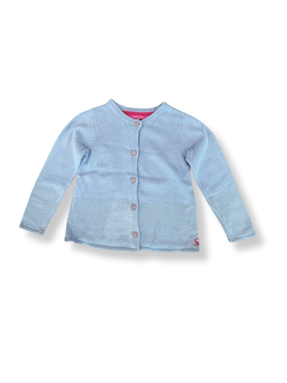 Ein zarter hellblauer Cardigan aus Wollmischung, mit silbernem Lurexgarn an den Ärmeln - perfekt für sommerliche Tage. Dieser Cardigan bleibt stets eine stilvolle Wahl.