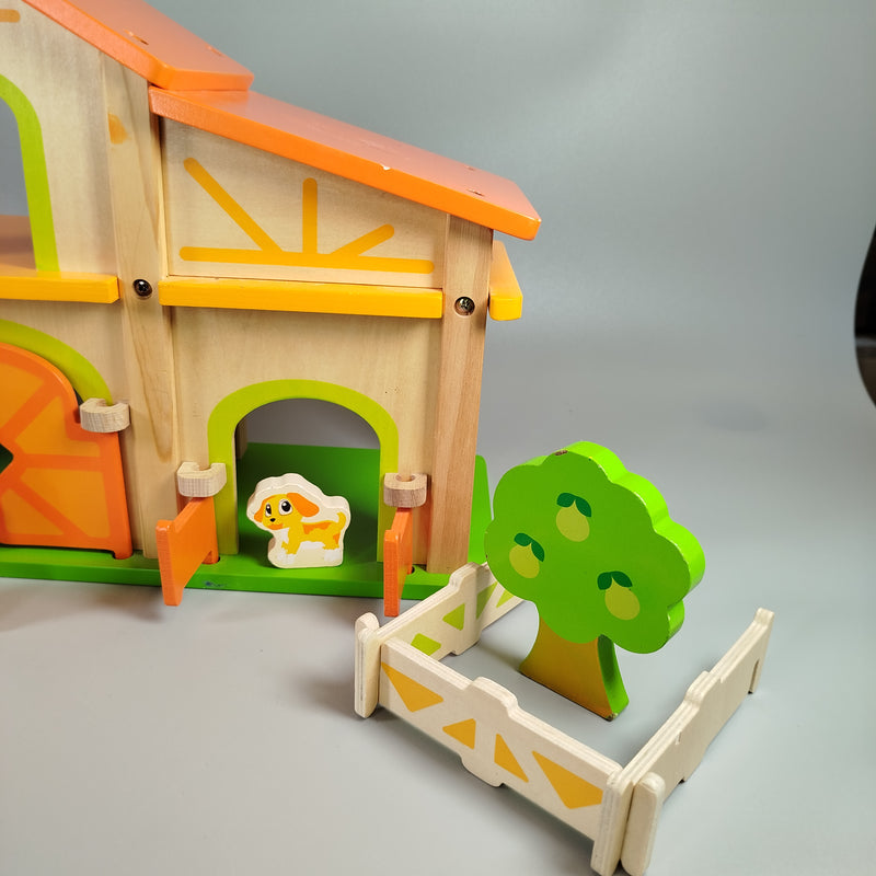 Hol dir das Bauernhof-Spielset aus Holz und lass die Fantasie deines Kindes erblühen! Dieses Set enthält ein bunte Bauernhofhaus, zwei stabile Baumfiguren, eine Scheune, einen Traktor und fünf liebevoll gestaltete Holzfiguren, darunter ein Bauer, eine Bäuerin sowie vier Bauernhoftiere: Kuh, Schwein, Hund und Ente. Es ist perfekt für kreative Rollenspiele und pädagogisches Spielen gedacht. Gib diesem Holzspielzeug ein neues Zuhause und fördere umweltfreundliches Spielen. Das Set kommt in einem nicht spezifizierten Karton. Der Zustand des Sets ist neuwertig ohne Originalverpackung. Hinweis: Geeignet für Kinder ab 3 Jahren. Enthält keine Kleinteile und bietet somit ein sichereres Spielumfeld.