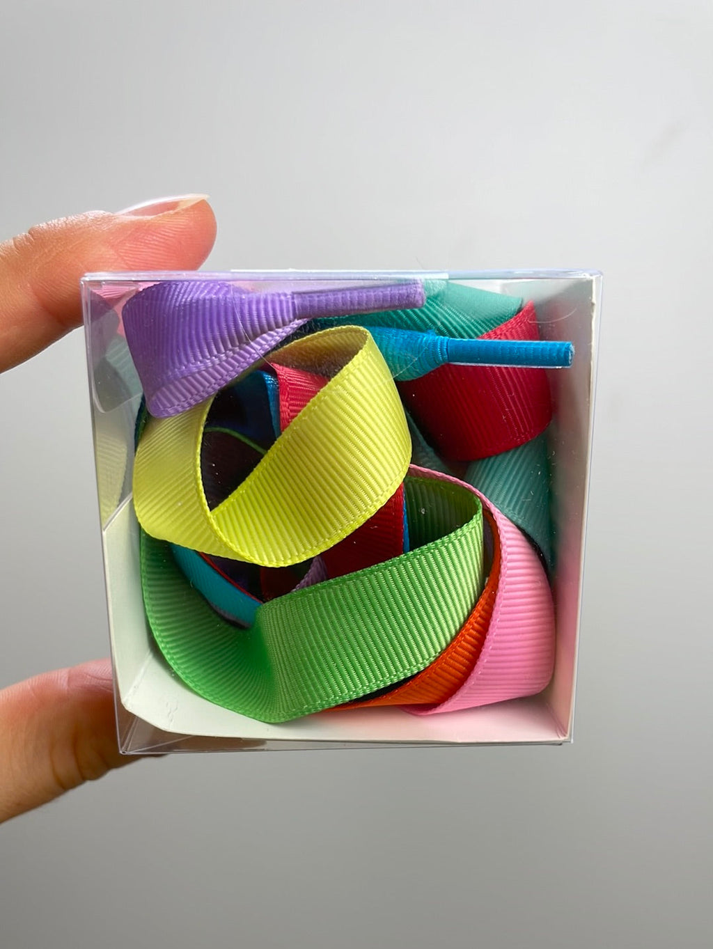 Mithilfe dieser farbenfrohen Ripsbänder lassen sich coole Kombinationen der Ponii Beads perfekt in Szene setzen. Sie können die Armbänder einfach mit einem Knoten oder mit einem coolen Verschluss verschließen. Durch die langen Enden der Armbänder erhalten Sie einen mega Festivallook. Lassen Sie Ihrer Kreativität freien Lauf!