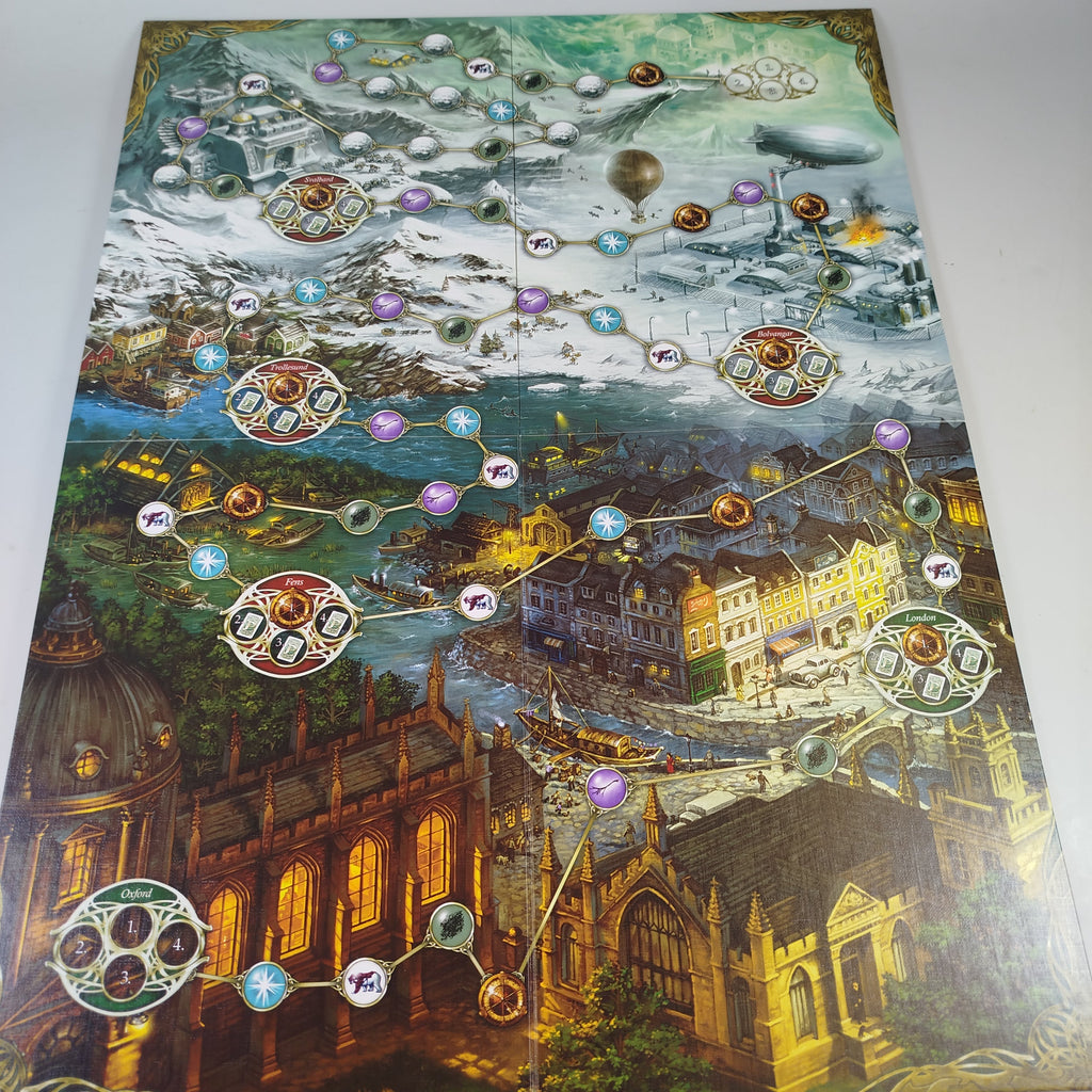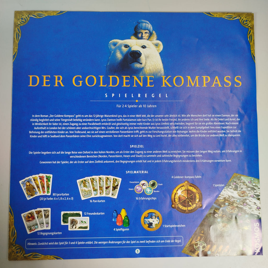 Erlebe die spannende Reise von Lyra im Brettspiel "Der Goldene Kompass", basierend auf dem gleichnamigen Roman von Philip Pullman. In diesem strategischen Spiel für 2-4 Spieler ab 10 Jahren begibst du dich auf eine abenteuerliche Reise von Oxford in den hohen Norden. Dabei sammelst du Erfahrungen, triffst auf Verbündete und überwindest Herausforderungen, um dein Ziel zu erreichen. Enthalten sind ein detailreich gestaltetes Spielbrett, verschiedene Karten, Spielfiguren und Kompass-Tableaus. Ein ideales Spiel für Fans des Buches und Liebhaber strategischer Gesellschaftsspiele. Sicherheitshinweis: Nicht für Kinder unter 3 Jahren geeignet. Erstickungsgefahr durch verschluckbare Kleinteile.