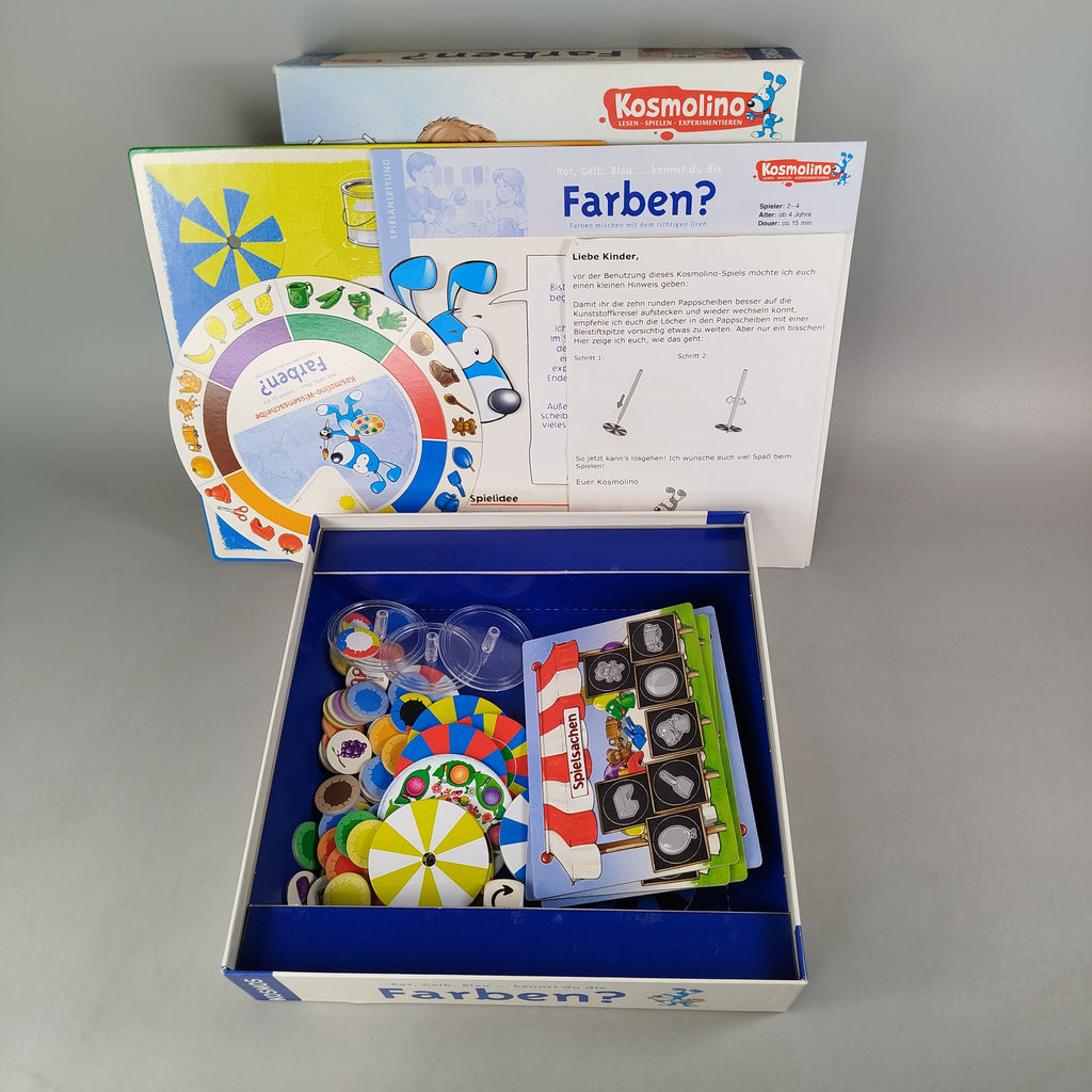 Hol dir das Lernspiel „Rot, Gelb, Blau ... kennst du die Farben?“ von KOSMOS und entdecke spielerisch die Welt der Farben. In diesem Brettspiel aus der Kosmolino-Reihe drehen Kinder am integrierten Kreisel, nutzen Spielpläne und farbige Elemente und ordnen Bildplättchen zu. Das Spiel ist für 2–4 Kinder gedacht, dauert etwa 15 Minuten und fördert das Erkennen und Benennen von Farben. Gib diesem Spielzeug ein neues Zuhause und unterstütze nachhaltiges Spielen. Sicherheitshinweis gemäß GPSR: Enthält Kleinteile, nicht geeignet für Kinder unter 3 Jahren.
