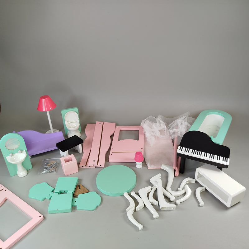 Hol dir das Puppenhaus-Spielset von MyToys und erschaffe fantasievolle Abenteuerwelten. Dieses Set enthält zahlreiche hölzerne Panels sowie ein breites Spektrum an Möbeln und Accessoires, ideal für kreative Rollenspiele. Gib diesem Spielzeug ein neues Zuhause und erlebe strahlende Kinderaugen! Enthält Miniaturbadewanne, Sessel, Tische und dekorierte Wände. Der Zustand zeigt nur geringfügige Gebrauchsspuren und die Vollständigkeit des Sets ist unklar. Empfohlen für Kinder ab 3 Jahren. Hinweis: Nicht geeignet für Kinder unter 36 Monaten aufgrund verschluckbarer Kleinteile. Sehr guter Zustand, minimale Gebrauchsspuren.