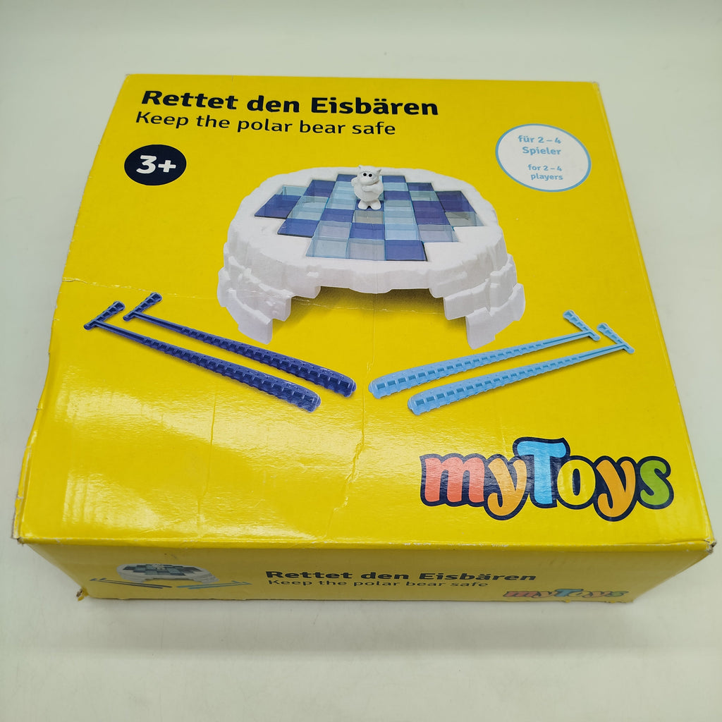 Hol dir das spannende Brettspiel „Rettet den Eisbären“ von myToys und bring Spaß ins Kinderzimmer! Das Spiel für 2–4 Spieler enthält 1 Spielbrett, 40 Eisblöcke in drei Farben, 4 Rahmen, Hämmer und eine niedliche Eisbärenfigur. Perfekt für Kinder ab 3 Jahren, um Geschicklichkeit und Reaktionsvermögen zu üben. Die Vollständigkeit wurde überprüft, Anleitung und Originalverpackung sind vorhanden. Das Spiel befindet sich in gutem gebrauchten Zustand mit sichtbaren Gebrauchsspuren. Hinweis: Enthält Kleinteile – nicht geeignet für Kinder unter 3 Jahren.