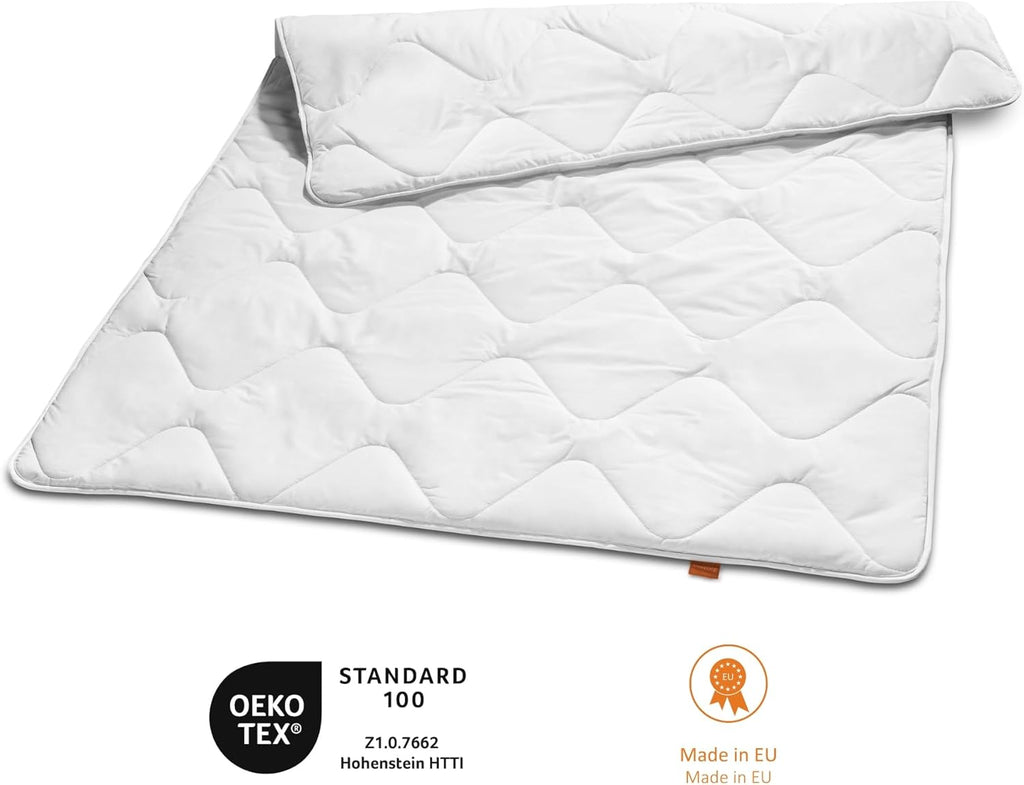 Füllung: Die Füllung besteht zu 100% aus Polyester (Klima Faser) nach Öko-Tex Standard 100 (Kissen: 200 gr. + Decke 420 gr. Füllgewicht)