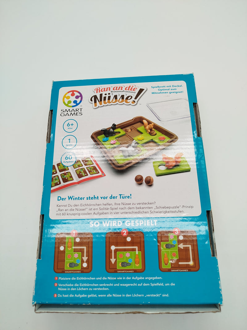 Dieses Logikspiel 'Ran an die Nüsse!' von SmartGames bietet 60 abwechslungsreiche Aufgaben in verschiedenen Schwierigkeitsstufen und soll Spieler:innen helfen, die putzigen Eichhörnchen anzuleiten, ihre Nüsse zu verstecken. Alle Teile, einschließlich der Anleitung, sind in ausgezeichnetem Zustand und werden in der Originalverpackung geliefert, die leichte Gebrauchsspuren aufweist. Gib diesem Spielzeug ein neues Zuhause und unterstütze die Wiederverwendung von Spielzeug. Sicherheitshinweis: Nicht für Kinder unter 3 Jahren geeignet.