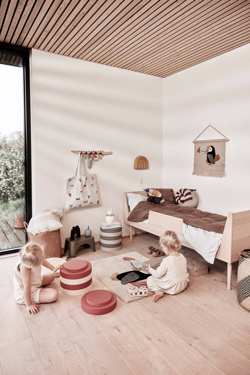 The Toucan Rug is a cozy and playful addition to your child's space, designed to keep small feet warm. This rug is a fun and vibrant accent for the kids' room, adding a touch of whimsy to their environment. Crafted from a blend of 80% wool and 20% cotton, it offers both softness and durability. To maintain its charm, it is recommended to vacuum and spot clean only.