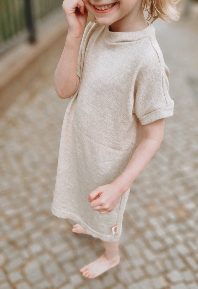 This unisex dress was once a damaged wool sweater. Jawoll Baby saves the valuable material wool through upcycling. The wool material (100% wool) is wonderfully light and also suitable for warmer temperatures.