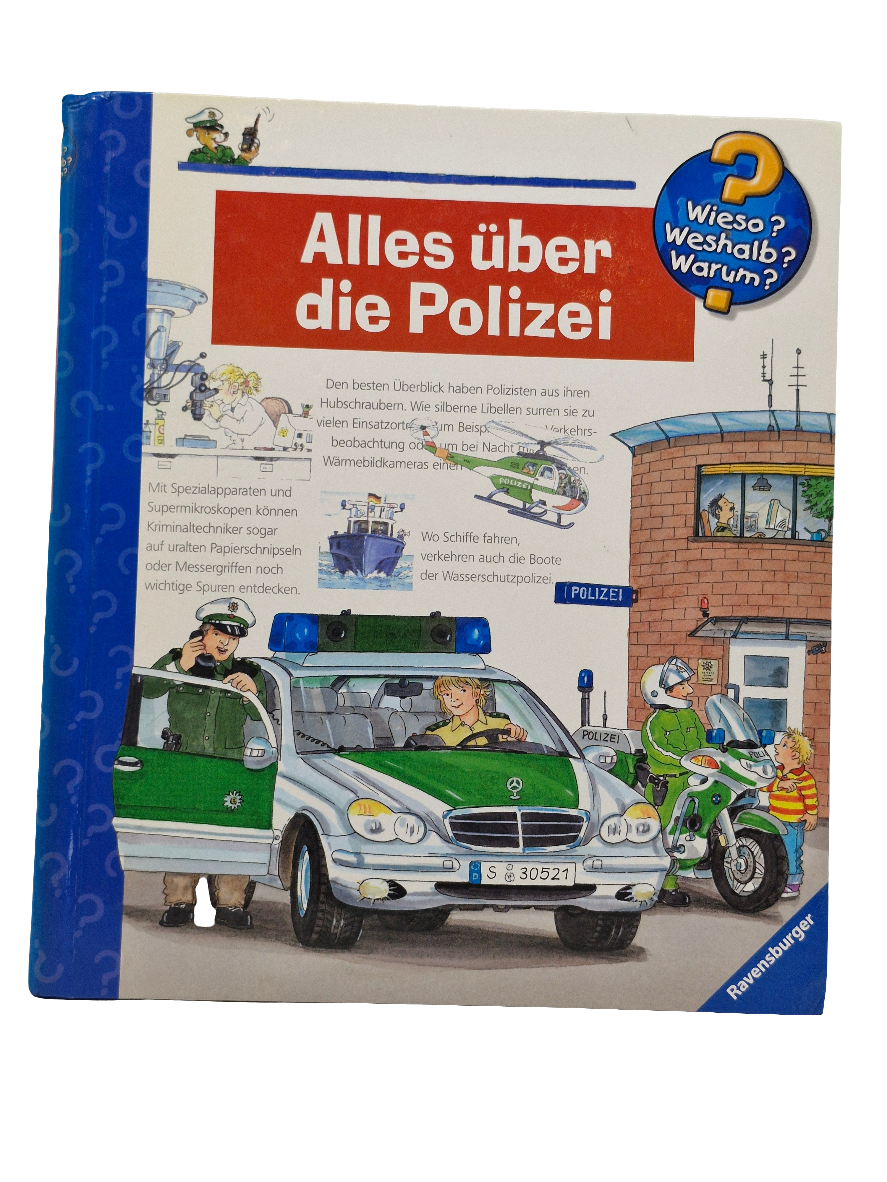 Dieses Wissensbuch „Alles über die Polizei“ aus der beliebten Reihe „Wieso? Weshalb? Warum?“ von Ravensburger bietet Kindern spannende Einblicke in die Arbeit der Polizei. Es erklärt auf verständliche Weise wichtige Aufgaben und Abläufe und fördert so das Interesse und Verständnis für dieses wichtige Thema. Der Zustand des Buches ist gut, sodass es sich ideal zum Lernen und Entdecken eignet. Ein unterstützendes und informatives Buch für neugierige junge Leser.