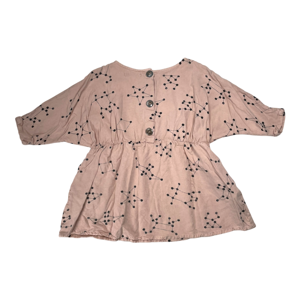 Bobo Choses long sleeved dress in constellations print with pockets on the sides and buttons in the back.