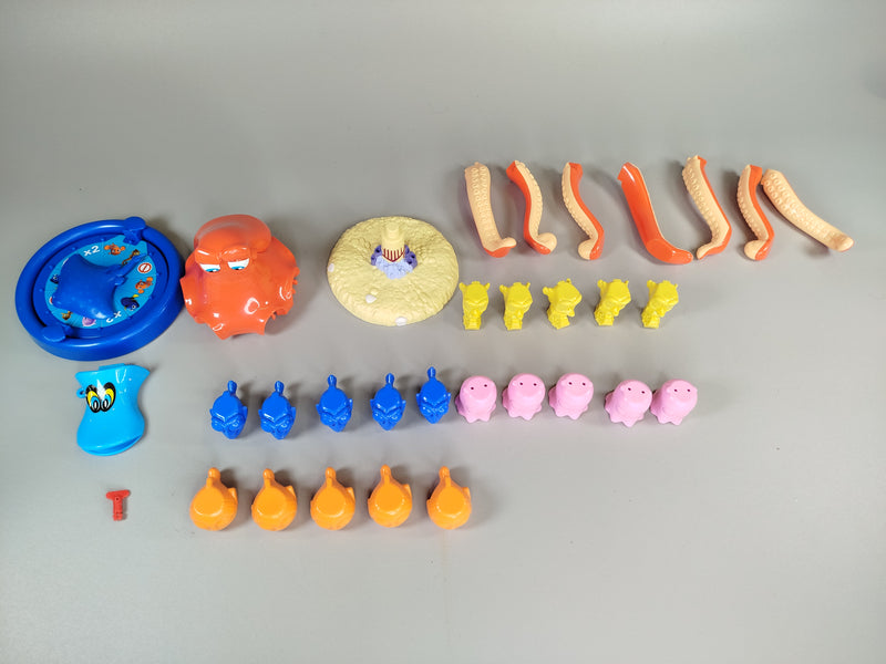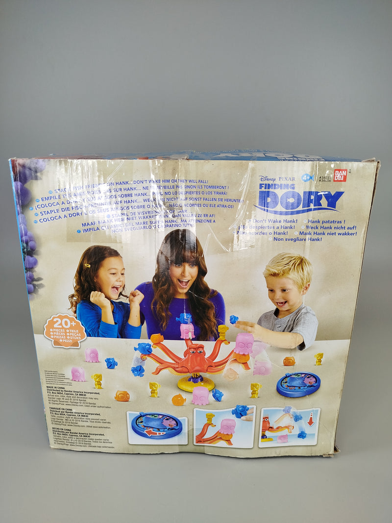 Tauche ein in die Unterwasserwelt von Disney/Pixar's Findet Dorie mit Hank's Tintenfischspiel! Dieses lustige Geschicklichkeitsspiel fördert die Feinmotorik und die Hand-Auge-Koordination. Ziel des Spiels ist es, die beliebten Filmfiguren aus Findet Dorie auf Hank's Tentakeln zu stapeln, ohne dass sie herunterfallen. Enthält über 20 farbenfrohe Teile und bietet stundenlangen Spielspaß für die ganze Familie. Das Spiel ist aus robustem Kunststoff gefertigt und lässt sich leicht reinigen. Ideal für Kinder ab 4 Jahren. Hinweis: Die Verpackung weist Gebrauchsspuren auf, das Spiel ist in sehr gutem Zustand. Spielanleitung nicht enthalten. Achtung: Nicht für Kinder unter 3 Jahren geeignet. Erstickungsgefahr durch Kleinteile.