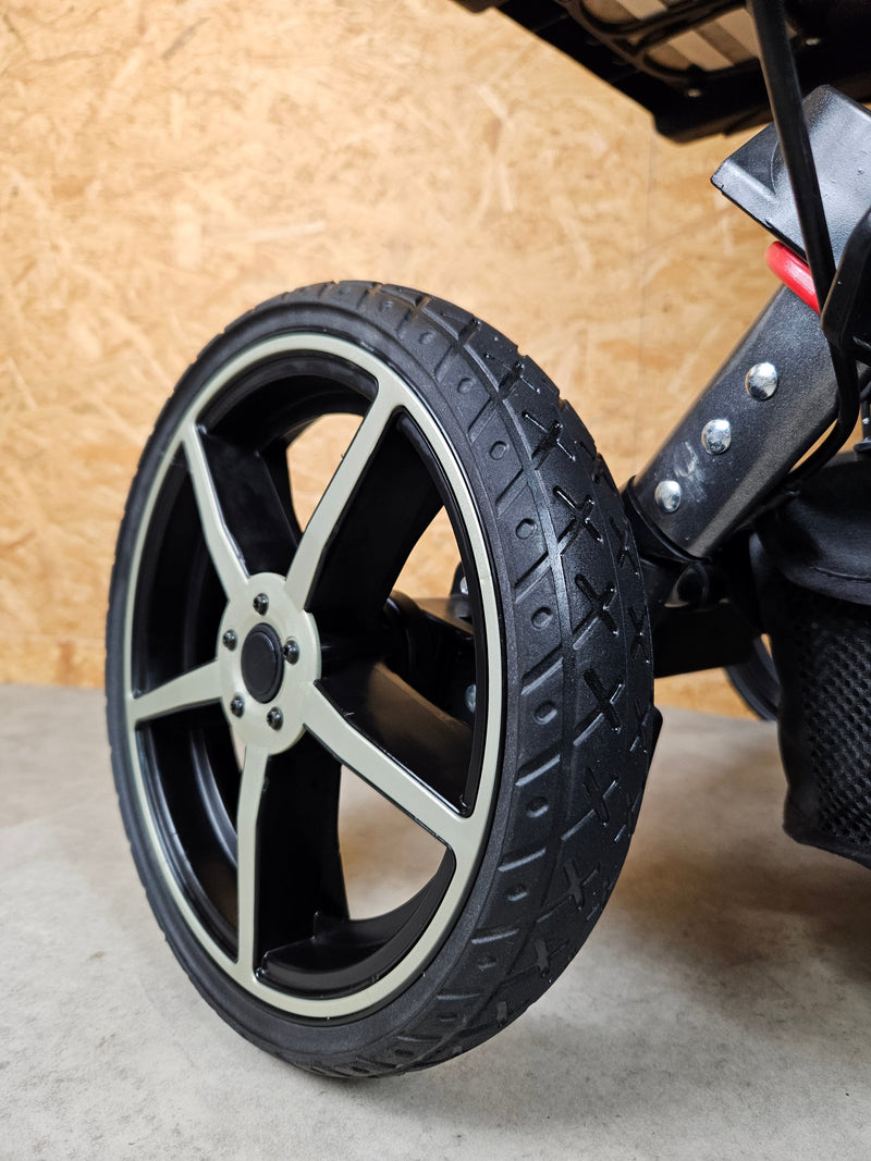 - Einstellbare Federung / Feststellbare Einzelschwenkräder / Luftkammerräder