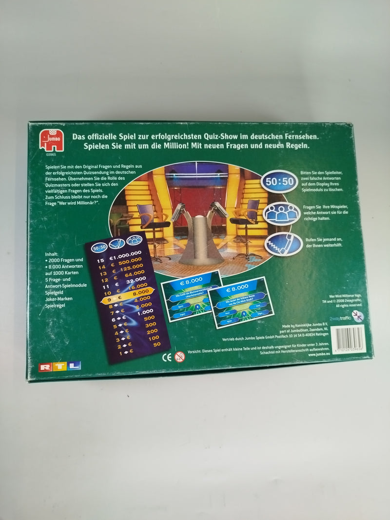 "Wer wird Millionär" (dritte Edition) bringt die spannende Quizshow direkt ins Wohnzimmer! Spiele alleine oder mit Freunden und beantworte knifflige Fragen aus verschiedenen Kategorien, um die Million zu gewinnen. Nutze die bekannten Joker wie 50:50, Telefonjoker und Publikumsjoker, um dir auf dem Weg zur richtigen Antwort zu helfen. Das perfekte Spiel für Quiz-Fans und alle, die ihr Wissen auf die Probe stellen möchten!