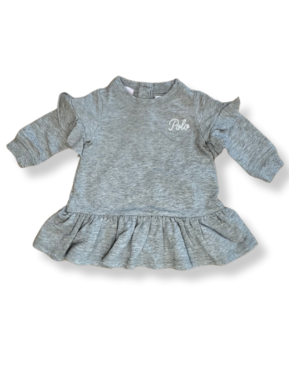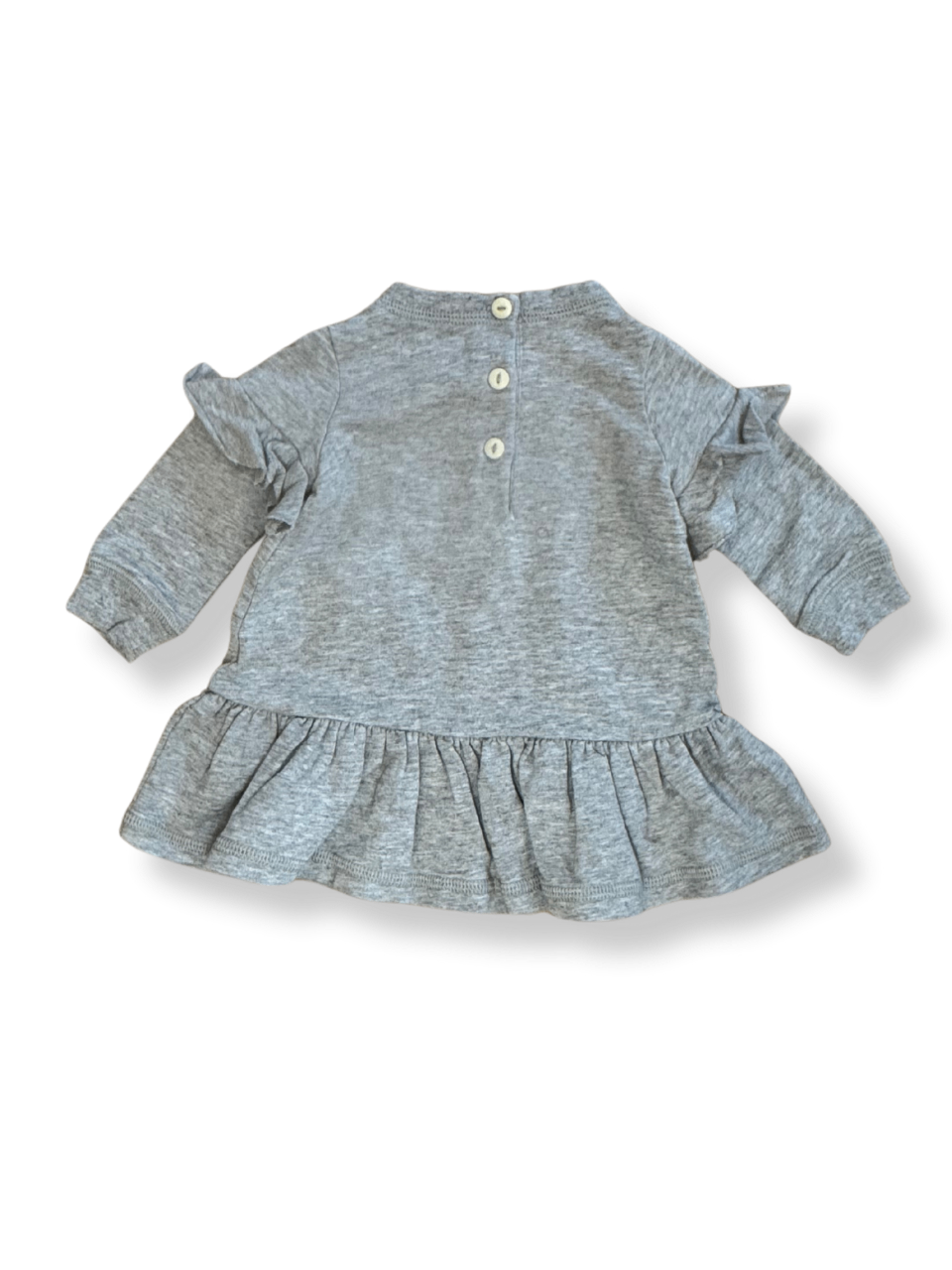 Dieses graue Kleid für Kinder überzeugt durch seinen lässigen und gleichzeitig eleganten Look. Der Stoff ist aus hochwertiger Baumwolle und sorgt für ein angenehmes Tragegefühl. Die Rüschen an den Ärmeln und der geraffte Saum verleihen dem Kleid eine verspielte Note.