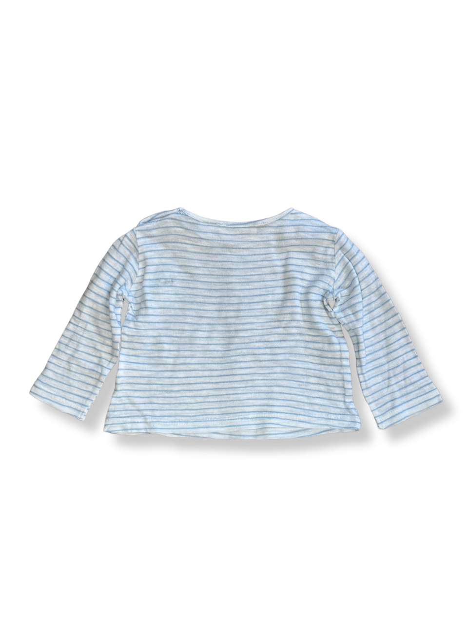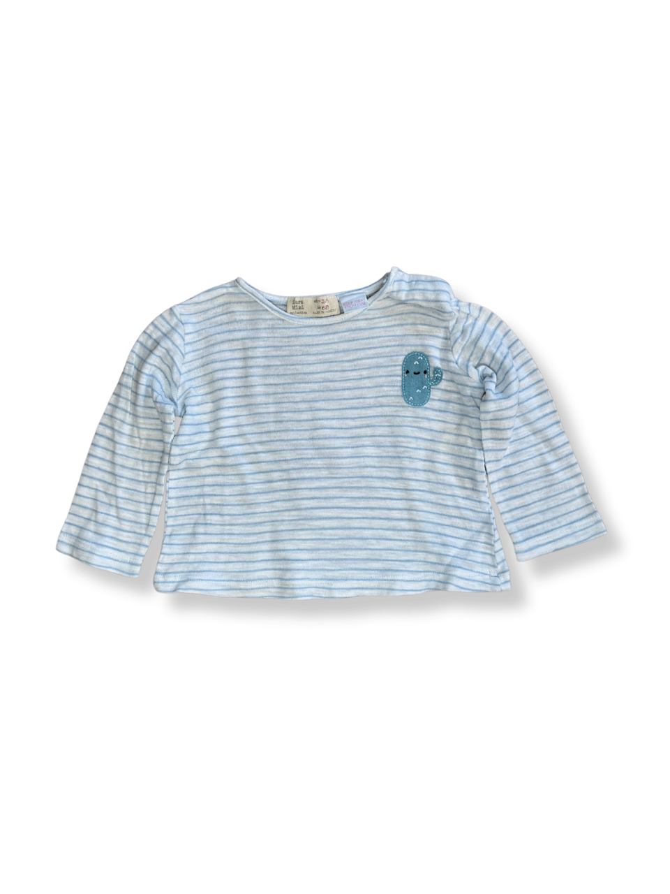 Dieses süße hellblaue Langarmshirt von Zara in Größe 68 mit Streifenmuster ist ein echtes Einzelstück und ein Must-have für alle, die Wert auf Individualität legen!