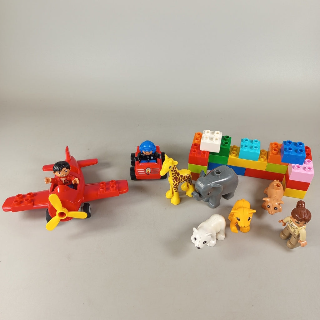 Hol dir das farbenfrohe LEGO Duplo Tier- und Fahrzeug-Set und bring Spielspaß ins Kinderzimmer! Dieses vielseitige Set enthält 3 Duplo-Figuren, 6 verschiedene Tiere wie Giraffe, Elefant, Eisbär, Löwenjunges und Bären, dazu ein rotes Flugzeug, ein Fahrzeug mit Blitzlogo und 20 bunte Bausteine. Ideal für kleine Entdecker ab 2 Jahren, die Fantasie und Motorik fördern. Das Spielzeug ist gebraucht und in gutem Zustand mit leichten Gebrauchsspuren. Die Vollständigkeit konnte nicht überprüft werden. Hinweis: Enthält Kleinteile, nicht geeignet für Kinder unter 3 Jahren. Gib diesen Steinen ein neues Zuhause und fördere nachhaltiges Spielen!