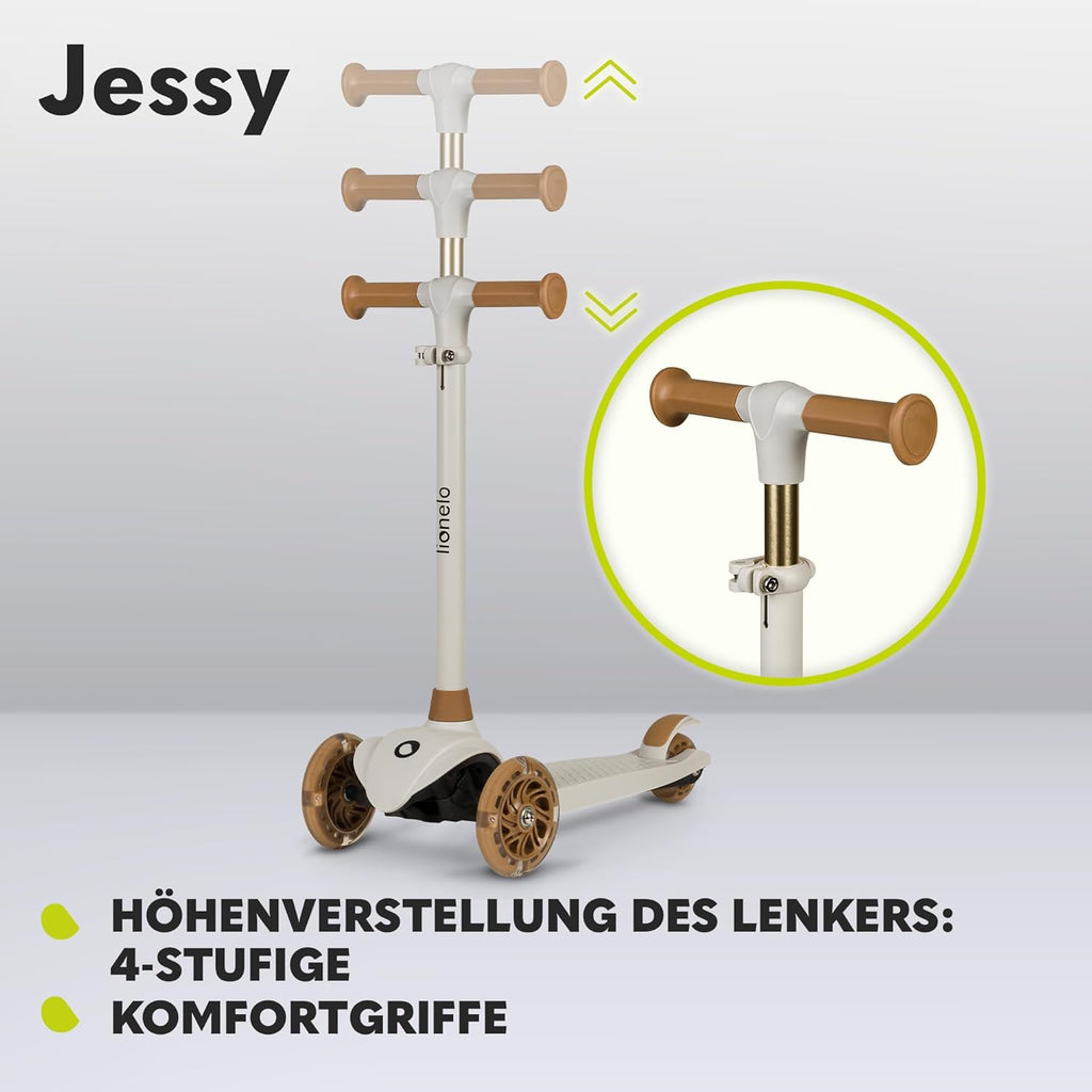 KOMFORTABLE STEUERUNG: Der Roller verfügt über eine Höhenverstellung des Lenkers auf den Ebenen 65/70/75/80 cm. Bequeme Griffe verbessern den Fahrkomfort, und der Lenkeinschlagsbegrenzer auf 65 Grad verhindert ein Umkippen während der Fahrt