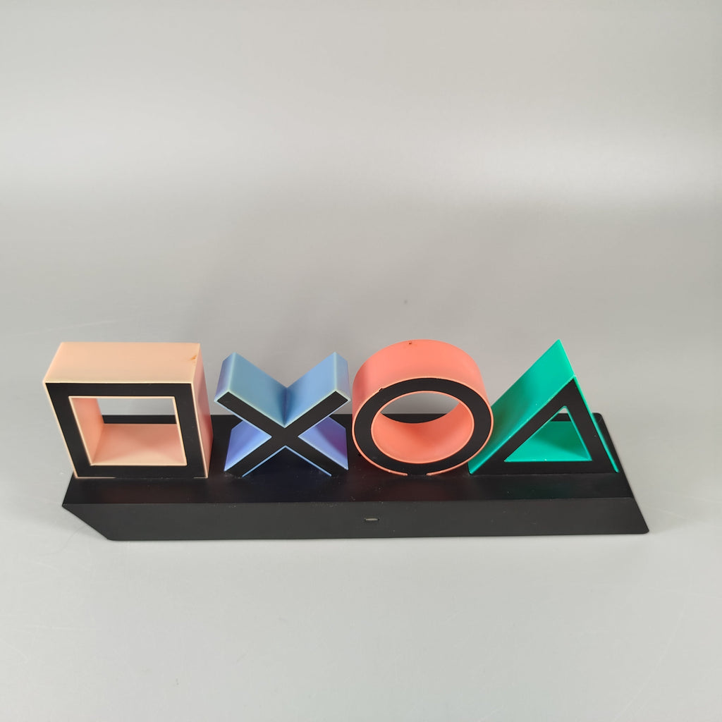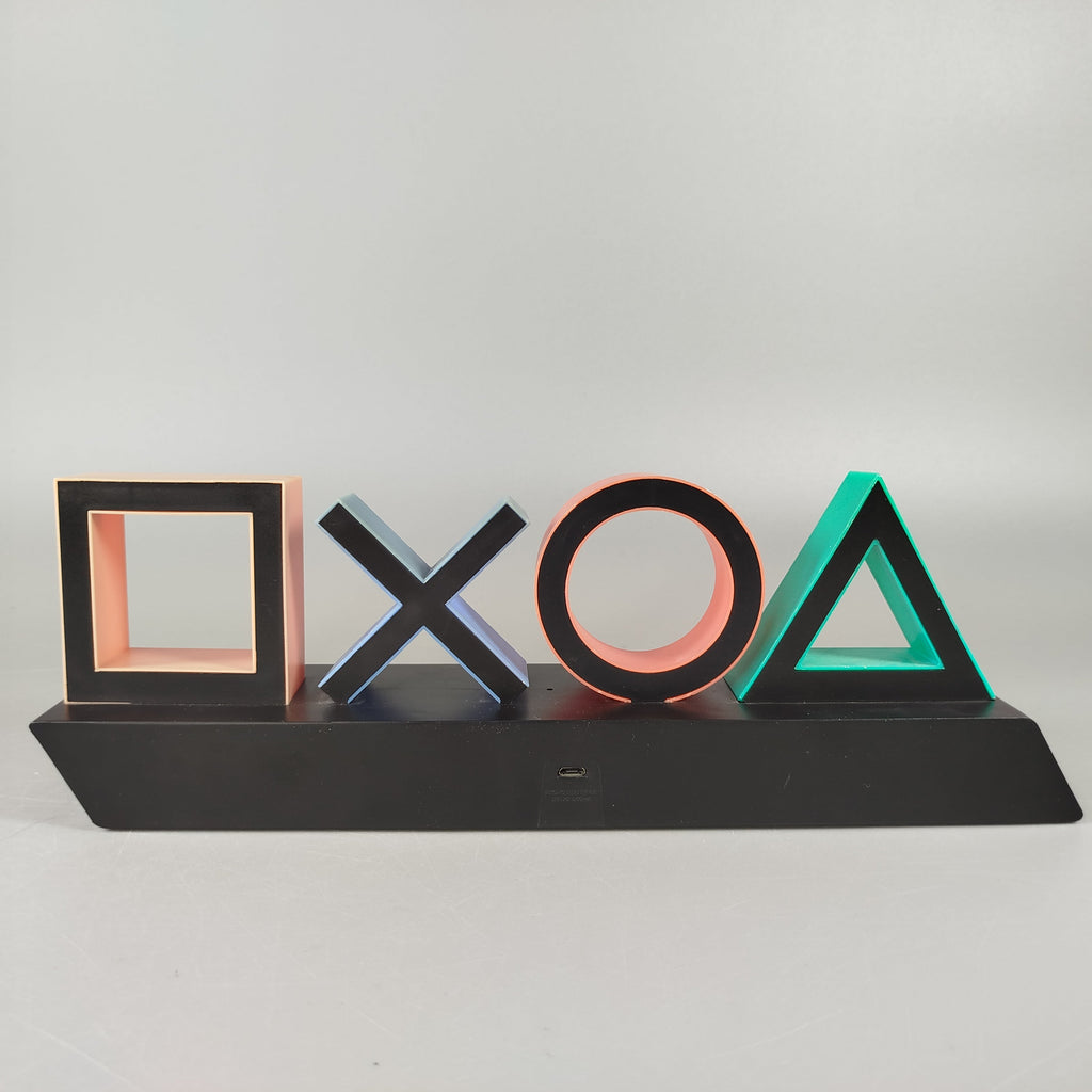 Hol dir die PlayStation Symbole Deko-Leuchte, ein Muss für alle Gaming-Fans! Diese stylische Leuchte repräsentiert die ikonischen PlayStation Buttons: Dreieck, Kreis, Kreuz und Quadrat. Jedes der Symbole leuchtet in lebhaften Farben, ideal als stimmungsvolle Beleuchtung für jedes Spielzimmer. Gib diesem dekorativen Element ein neues Zuhause und schaffe eine Atmosphäre wie nie zuvor! Hinweis: Enthält keine Kleinteile, geeignet für alle Altersgruppen.