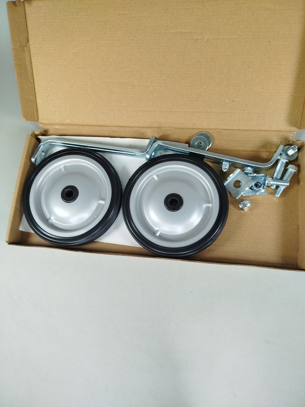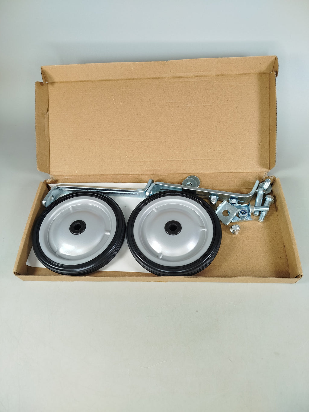 Hol dir das komplette Stützräder-Set für Puky Kinderfahrräder und unterstütze sicheres Fahrenlernen. Enthalten sind zwei Metallstützräder mit Gummirand, passende Halterungen und Montagematerial sowie eine mehrsprachige Montageanleitung. Die Räder sind unbenutzt und in neuwertigem Zustand, Verpackung fehlt. Perfekt geeignet für 12–18 Zoll Puky Rookie Bikes.