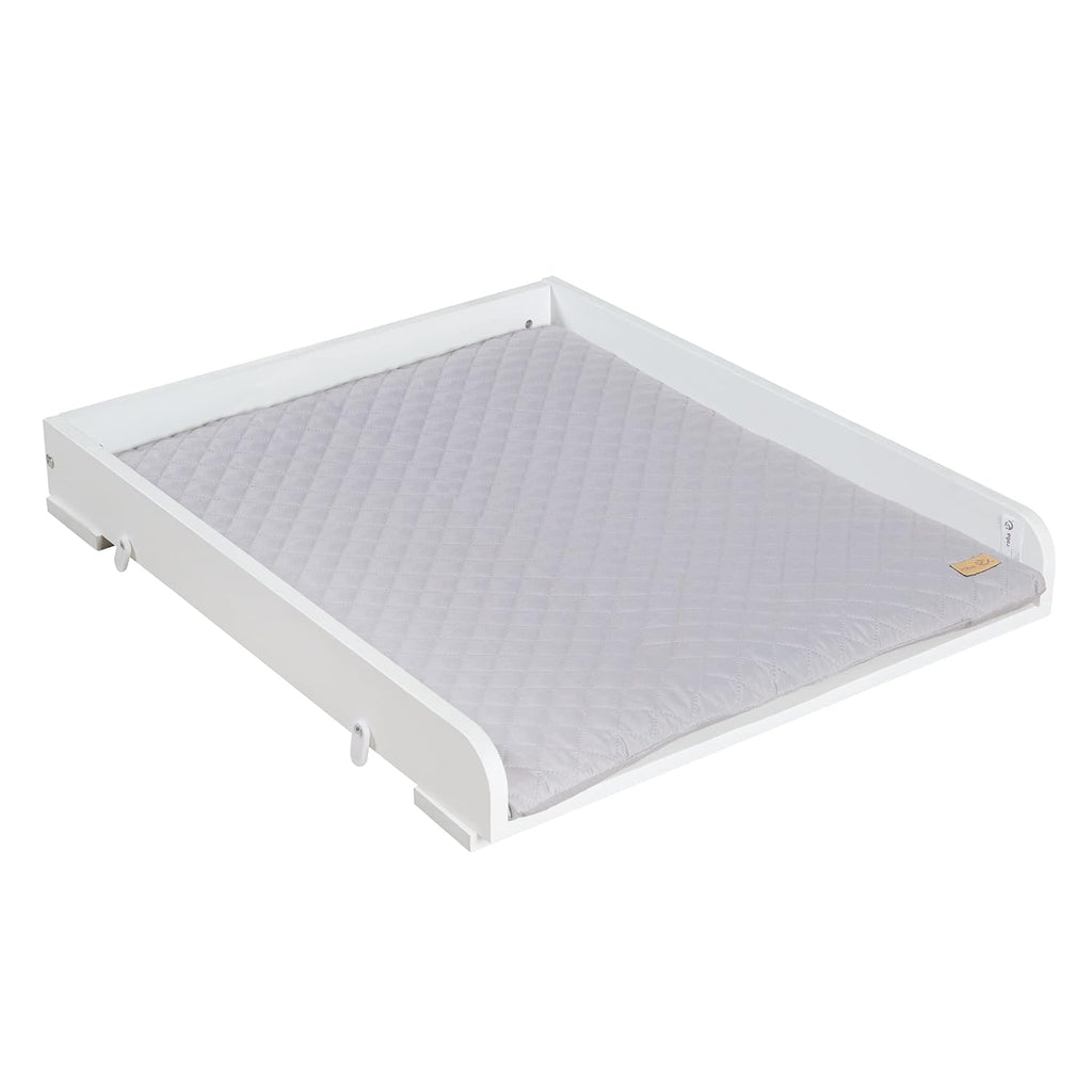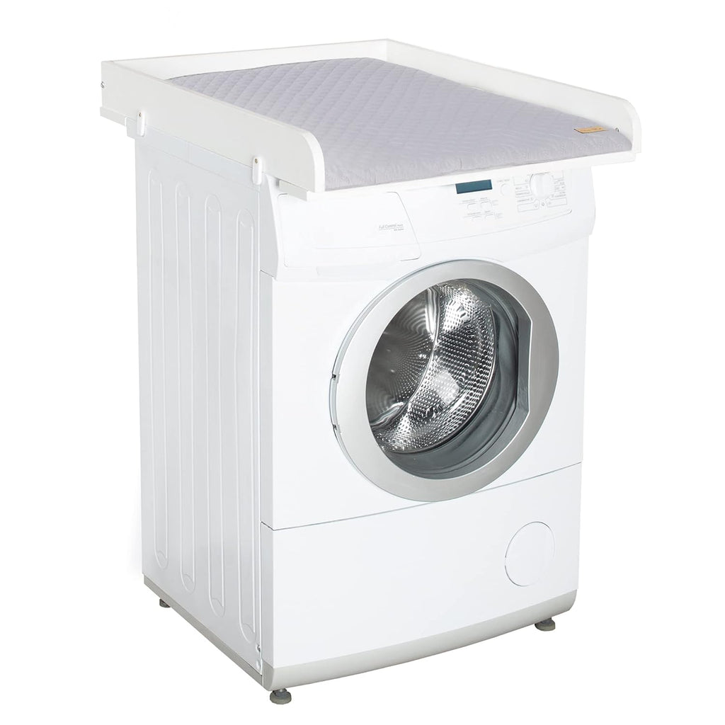 Die roba Wickelplatte in weiß ist platzsparend und somit genau das Richtige für trendbewusste Eltern, die nur wenig Platz in ihrer Wohnung haben. Durch einfaches Aufsetzen auf der Waschmaschine erhalten Sie eine Wickelfläche für Ihr Baby. Für einen optimalen Halt sollte die Waschmaschine 60 cm breit und 53-54 cm tief sein. Eine weich gepolsterte PU-beschichtete Wickelauflage in harmonischem Design ‚roba Style‘ in grau ist im Set enthalten. Die Wickelauflage ist aus starker, reißfester Folie (phthalatfrei) mit einer speziellen Nähtechnik gefertigt und dadurch besonders strapazierfähig. Die weiche Füllung um den erhöhten Rand schützt Ihr Kind beim Wickeln. Unsere Wickelplatte ist für Kinder bis 12 Monaten und einem Gewicht bis 11 kg geeignet. Maße der Wickelplatte - Breite: 60 cm, Tiefe: 73 cm, Höhe 10cm. Wickelfläche: 56x71 cm