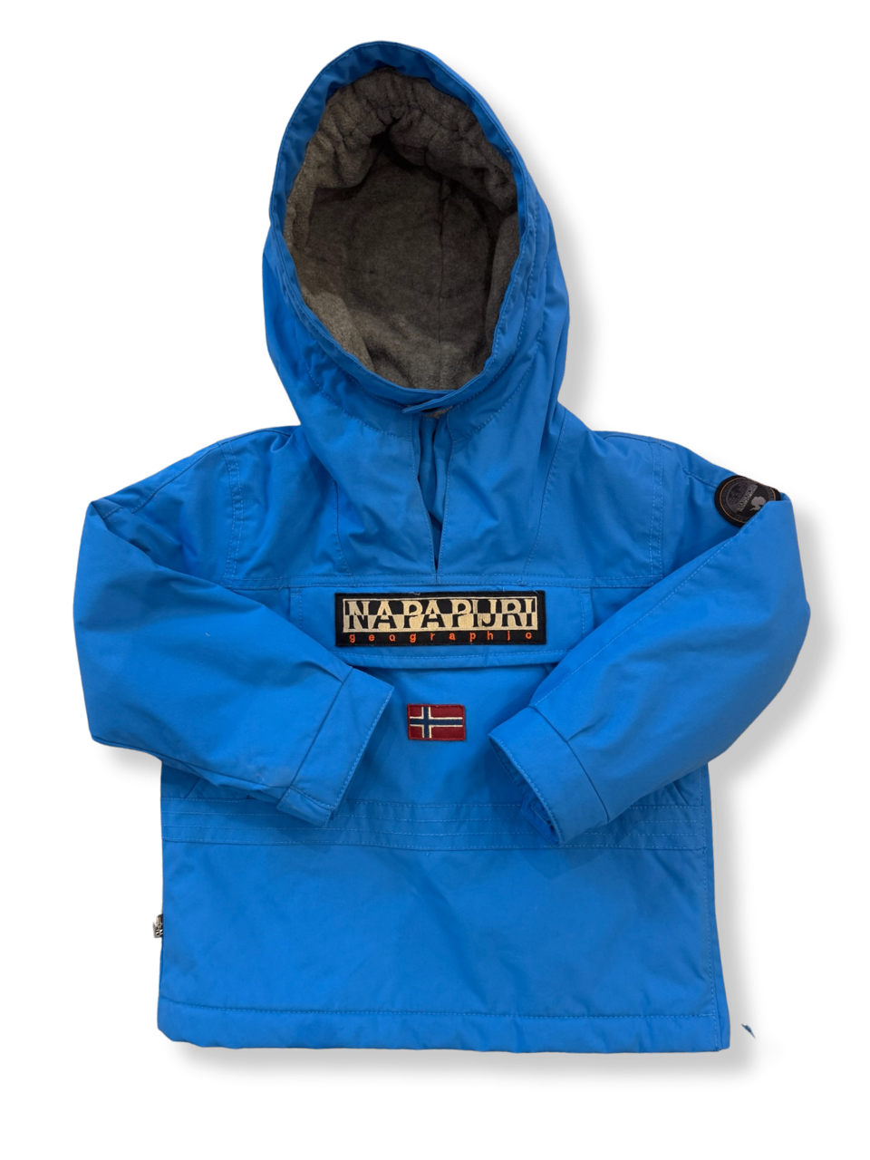 Dieser leuchtend blaue Ski Anorak von Napapijri ist ein echtes Einzelstück, das deinem kleinen Skihasen den perfekten Style auf der Piste verleiht. Mit diesem Anorak fällt dein Kind garantiert auf - nachhaltig und stylisch zugleich! #secondhandfashion #nachhaltigemode #skiwear