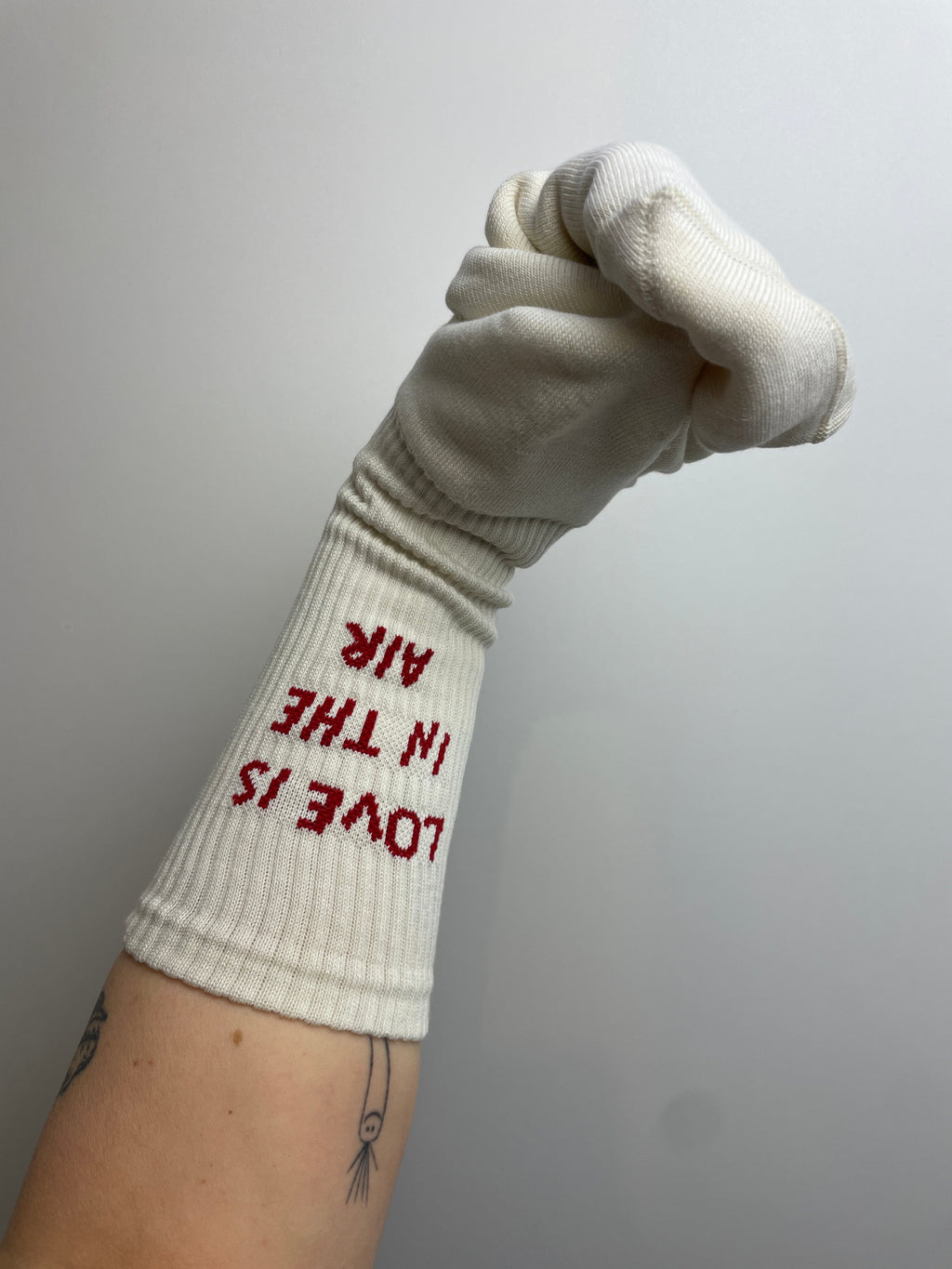 Der Schriftzug „Love is in the Air“ auf der Rückseite strahlt in einem eleganten Bordeauxrot und erinnert an eine liebevolle Botschaft, die direkt von Herzen kommt. Designed in Hamburg und nachhaltig in der EU gefertigt, sind diese Socken nicht nur zum Valentinstag das perfekte Geschenk für deinen Lieblingsmenschen.