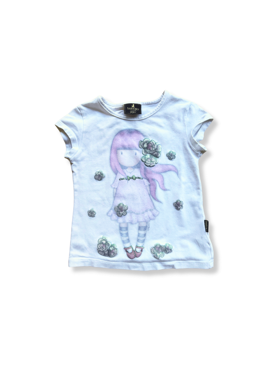 T-Shirt Mädchen weiß mit Glitzrblumen Gr.6 | Santoro