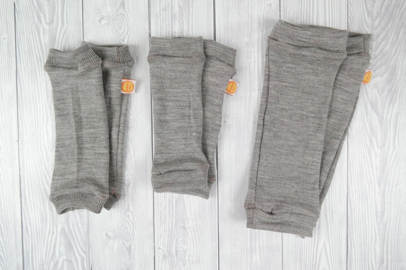 Tragestulpen Beinstulpen Babylegs in Grau Upcycling aus Wolle natürlicher Sonnenschutz im Sommer für Babys und Kleinkinder in der Trage